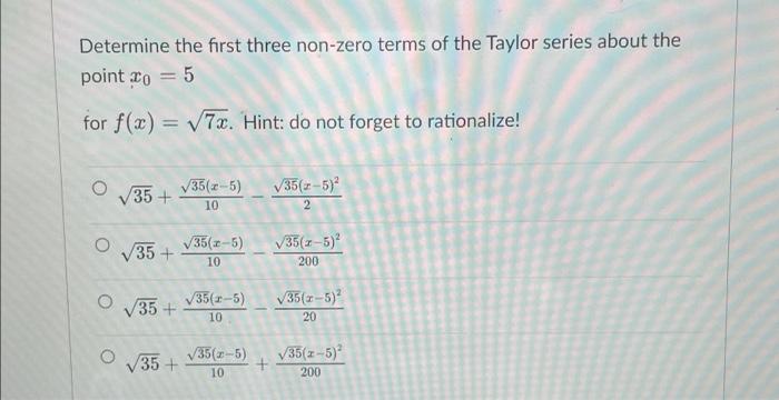 Solved Determine The First Three Non Zero Terms Of The Chegg Com